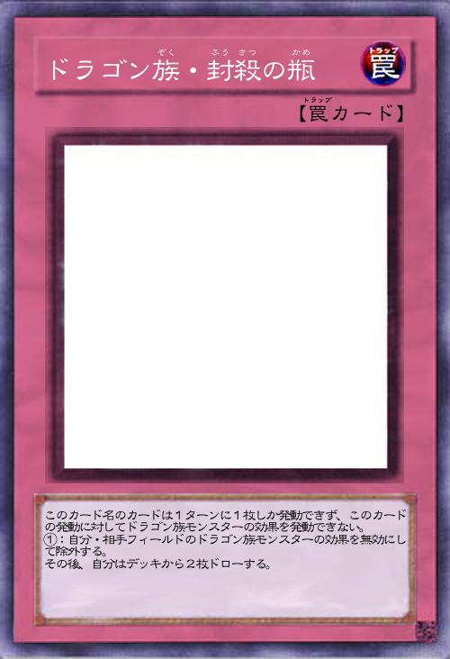 | このカード名のカードは1ターンに1枚しか発動できず、このカードの発動に対してドラゴン族モンスターの効果を発動できない。 ①:自分・相手フィールドのドラゴン族モンスターの効果を無効にして除外する。 その後、自分はデッキから2枚ドローする。 | |||