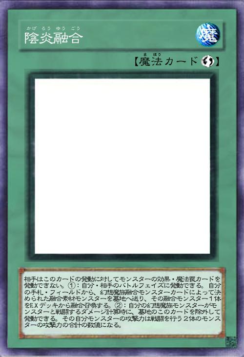 | 相手はこのカードの発動に対してモンスターの効果・魔法罠カードを発動できない。①:自分・相手のバトルフェイズに発動できる。自分の手札・フィールドから、幻想魔族融合モンスターカードによって決められた融合素材モンスターを墓地へ送り、その融合モンスター1体をEXデッキから融合召喚する。②:自分の幻想魔族モンスターがモンスターと戦闘するダメージ計算時に、墓地のこのカードを除外して発動できる。その自分モンスターの攻撃力は戦闘を行う2体のモンスターの攻撃力の合計の数値になる。 | |||