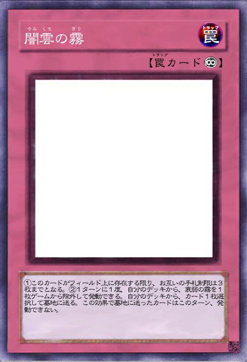 | ①このカードがフィールド上に存在する限り、お互いの手札制限は3枚までとなる。②1ターンに1度、自分のデッキから、衰弱の霧を1枚ゲームから除外して発動できる。自分のデッキから、カード1枚選択して墓地に送る。この効果で墓地に送ったカードはこのターン、発動できない。 | |||