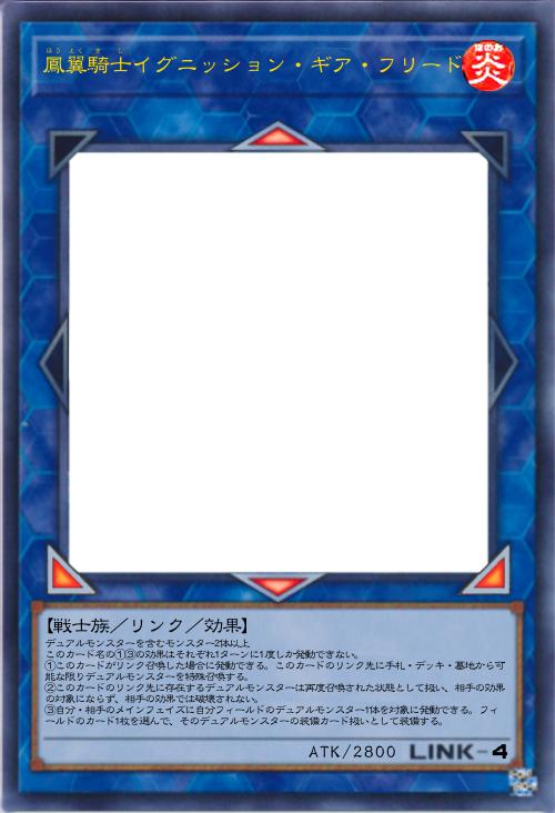 | デュアルモンスターを含むモンスター2体以上 このカード名の①③の効果はそれぞれ1ターンに1度しか発動できない。 ①このカードがリンク召喚した場合に発動できる。このカードのリンク先に手札・デッキ・墓地から可能な限りデュアルモンスターを特殊召喚する。 ②このカードのリンク先に存在するデュアルモンスターは再度召喚された状態として扱い、相手の効果の対象にならず、相手の効果では破壊されない。 ③自分・相手のメインフェイズに自分フィールドのデュアルモンスター1体を対象に発動できる。フィールドのカード1枚を選んで、そのデュアルモンスターの装備カード扱いとして装備する。 | |||