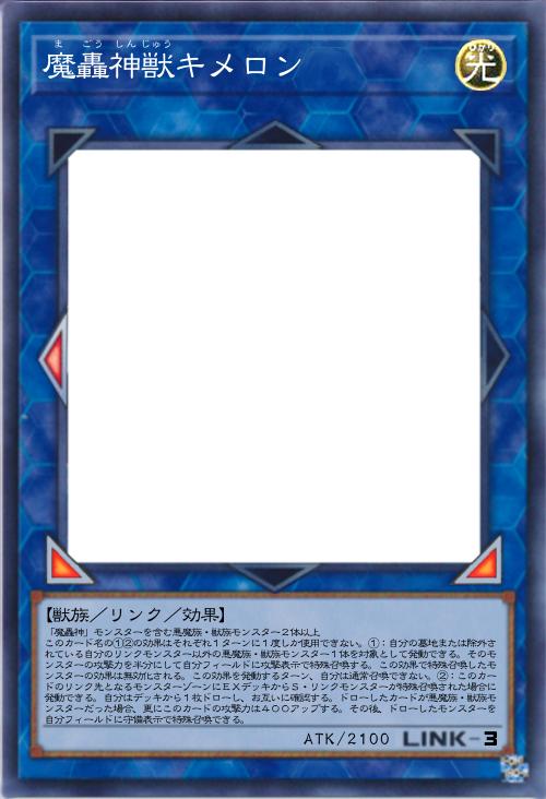 | 「魔轟神」モンスターを含む悪魔族・獣族モンスター2体以上 このカード名の①②の効果はそれぞれ1ターンに1度しか使用できない。①:自分の墓地または除外されている自分のリンクモンスター以外の悪魔族・獣族モンスター1体を対象として発動できる。そのモンスターの攻撃力を半分にして自分フィールドに攻撃表示で特殊召喚する。この効果で特殊召喚したモンスターの効果は無効化される。この効果を発動するターン、自分は通常召喚できない。②:このカードのリンク先となるモンスターゾーンにEⅩデッキからS・リンクモンスターが特殊召喚された場合に発動できる。自分はデッキから1枚ドローし、お互いに確認する。ドローしたカードが悪魔族・獣族モンスターだった場合、更にこのカードの攻撃力は400アップする。その後、ドローしたモンスターを自分フィールドに守備表示で特殊召喚できる。 | |||