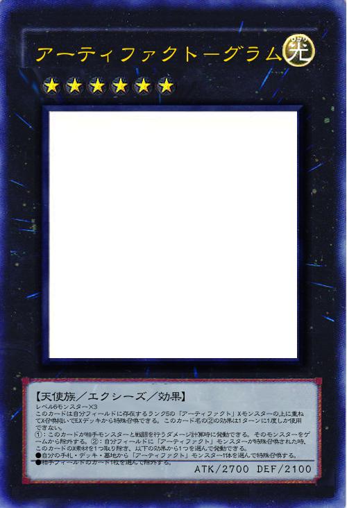 | レベル6モンスター×3 このカードは自分フィールドに存在するランク5の「アーティファクト」Xモンスターの上に重ねてX召喚扱いでEXデッキから特殊召喚できる。このカード名の②の効果は1ターンに1度しか使用できない。 ①:このカードが相手モンスターと戦闘を行うダメージ計算時に発動できる。そのモンスターをゲームから除外する。②:自分フィールドに「アーティファクト」モンスターが特殊召喚された時、このカードのX素材を1つ取り除き、以下の効果から1つを選んで発動できる。 ●自分の手札・デッキ・墓地から「アーティファクト」モンスター1体を選んで特殊召喚する。 ●相手フィールドのカード1枚を選んで除外する。 | |||
