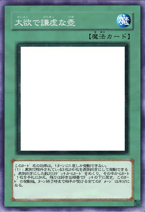 こう言うカードってまだ出ていなかったので作って見ました。裏側除外を表側にするので、金満で謙虚な壺とか、強欲で貪欲な壺とかと合わせて使いたいですねw