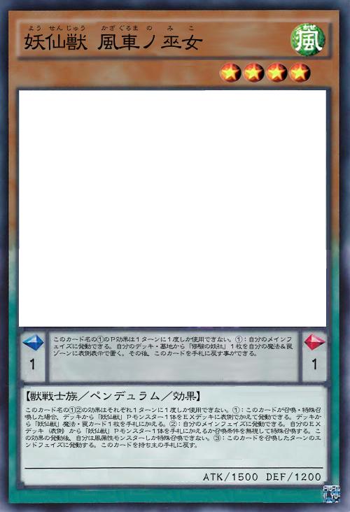 妖仙獣の上級モンスターは出しにくいのが難点であるため、現状の妖仙獣の強さから召喚条件を無視してもいいのでは?と思いこの効果にしました。