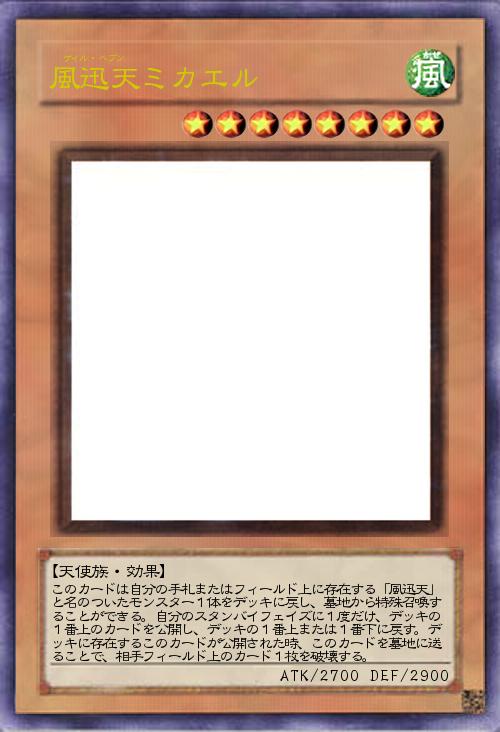 「第38弾。風迅天のエース。手札からも出せるようにするかどうか悩んだ末にこうなった。」(2012-08-06 14:35)