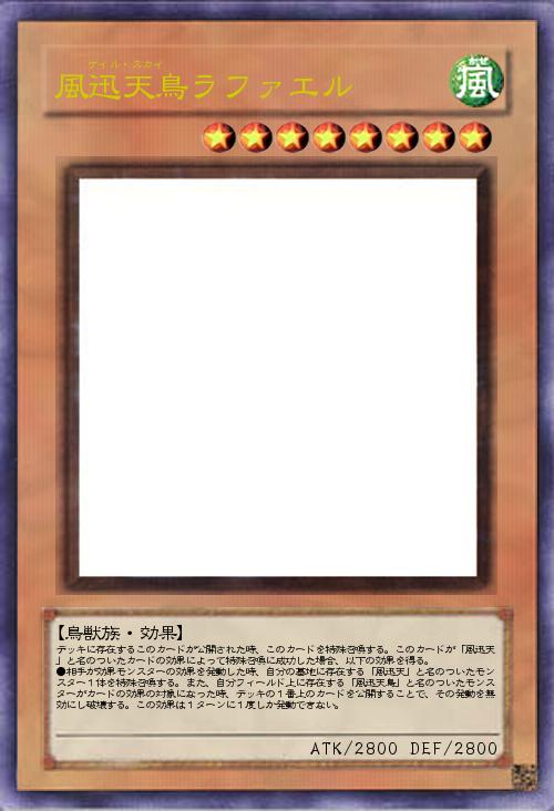 デッキに存在するこのカードが公開された時、このカードを特殊召喚する。このカードが「風迅天」と名のついたカードの効果によって特殊召喚に成功した場合、以下の効果を得る。 ●相手が効果モンスターの効果を発動した時、自分の墓地に存在する「風迅天」と名のついたモンスター1体を特殊召喚する。また、自分フィールド上に存在する「風迅天鳥」と名のついたモンスターがカードの効果の対象になった時、デッキの1番上のカードを公開することで、その発動を無効にし破壊する。この効果は1ターンに1度しか発動できない。 |