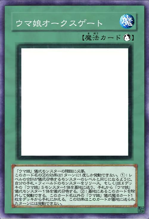 | 「ウマ娘」儀式モンスターの降臨に必要。 このカード名の②の効果は1ターンに1度しか発動できない。①:レベルの合計が儀式召喚するモンスターのレベルと同じになるように、自分の手札・フィールドのモンスターをリリース、もしくはEXデッキの「ウマ娘」Sモンスター1体を墓地に送り、手札から「ウマ娘」儀式モンスター1体を儀式召喚する。②:墓地にあるこのカードを除外して発動できる。このカード名以外の「ウマ娘」儀式魔法カード1枚をデッキから手札に加える。この効果はこのカードが墓地に送られたターンには発動できない。 | |||