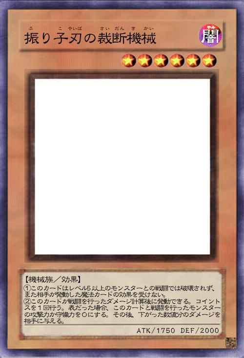 | ①このカードはレベル5以上のモンスターとの戦闘では破壊されず、また相手が発動した魔法カードの効果を受けない。 ②このカードが戦闘を行ったダメージ計算後に発動できる。コイントスを1回行う。表だった場合、このカードと戦闘を行ったモンスターの攻撃力か守備力を0にする。その後、下がった数値分のダメージを相手に与える。 | |||