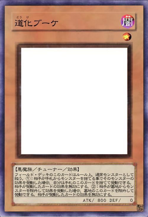 | フィールド・デッキのこのカードはルール上、通常モンスターとして扱う。①:相手が手札からモンスターを捨てる事でそのモンスターの効果を発動した場合、自分は手札のこのカードを捨てて発動できる。相手が発動したカードの効果を無効にする。②:相手が墓地からモンスターを除外して効果を発動した場合、墓地のこのカードを除外して発動できる。相手が発動したカードの効果を無効にする。 | |||