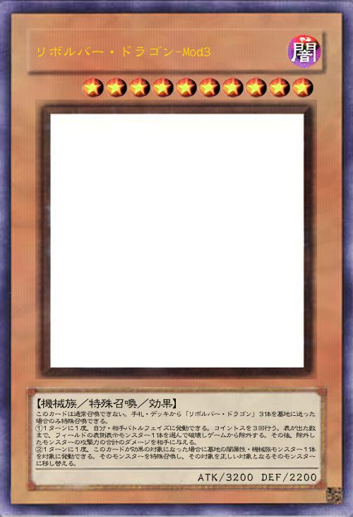 | このカードは通常召喚できない。手札・デッキから「リボルバー・ドラゴン」3体を墓地に送った場合のみ特殊召喚できる。 ①1ターンに1度、自分・相手バトルフェイズに発動できる。コイントスを3回行う。表が出た数まで、フィールドの表側表示モンスター1体を選んで破壊しゲームから除外する。その後、除外したモンスターの攻撃力の合計のダメージを相手に与える。 ②1ターンに1度、このカードが効果の対象になった場合に墓地の闇属性・機械族モンスター1体を対象に発動できる。そのモンスターを特殊召喚し、その対象を正しい対象となるそのモンスターに移し替える。 | |||
