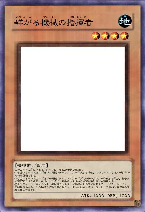| このカードの①の効果は1ターンに1度しか発動できない。 ①自分フィールド上に「群がる機械プチハウンズ」が存在する場合、このカードは手札・デッキから特殊召喚できる。 ②自分フィールド上に「群がる機械プチハウンズ」か「ダミートークン」が存在する限り、相手は攻撃可能な場合攻撃しなければならず、相手モンスターの攻撃対象は自分が選択する。 ③自分フィールドのレベル1・機械族モンスターが破壊される度に発動する。「ダミートークン」を特殊召喚する。この効果で特殊召喚されたトークンは融合・儀式・S・L・アドバンス召喚の素材に使用できない。 | |||