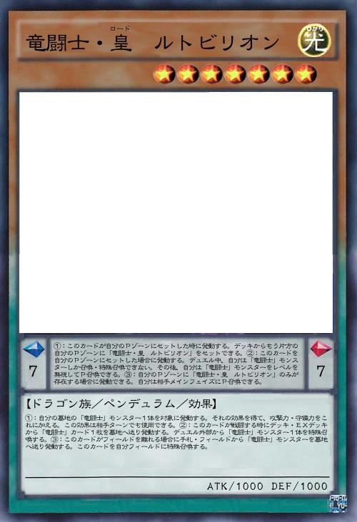 | ①:このカードが自分のPゾーンにセットした時に発動する。デッキからもう片方の自分のPゾーンに「竜闘士・皇 ルトビリオン」をセットできる。②:このカードを自分のPゾーンにセットした場合に発動する。デュエル中、自分は「竜闘士」モンスターしか召喚・特殊召喚できない。その後、自分は「竜闘士」モンスターをレベルを無視してP召喚できる。③:自分のPゾーンに「竜闘士・皇 ルトビリオン」のみが存在する場合に発動できる。自分は相手メインフェイズにP召喚できる。 | |||