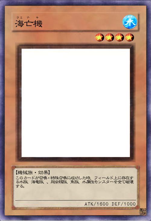 | このカードが召喚・特殊召喚に成功した時、フィールド上に存在する水族、海竜族、、爬虫類族、魚族、水属性モンスターを全て破壊する。 | |||