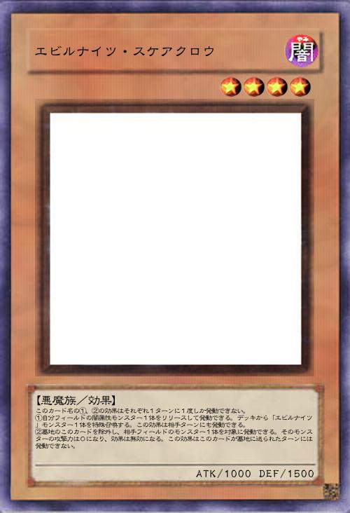 | このカード名の①、②の効果はそれぞれ1ターンに1度しか発動できない。 ①自分フィールドの闇属性モンスター1体をリリースして発動できる。デッキから「エビルナイツ」モンスター1体を特殊召喚する。この効果は相手ターンにも発動できる。 ②墓地のこのカードを除外し、相手フィールドのモンスター1体を対象に発動できる。そのモンスターの攻撃力は0になり、効果は無効になる。この効果はこのカードが墓地に送られたターンには発動できない。 | |||