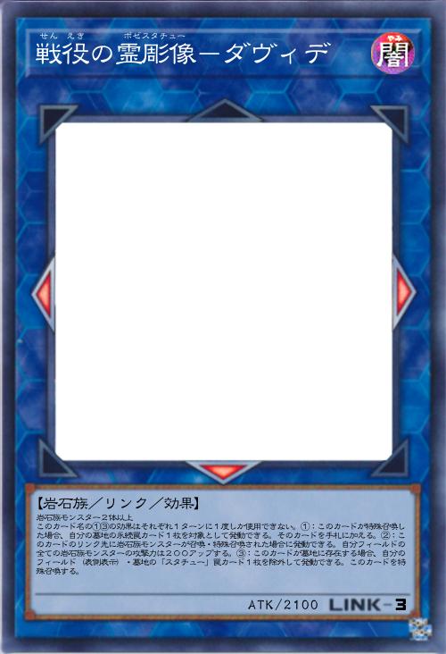 | 岩石族モンスター2体以上 このカード名の①③の効果はそれぞれ1ターンに1度しか使用できない。①:このカードが特殊召喚した場合、自分の墓地の永続罠カード1枚を対象として発動できる。そのカードを手札に加える。②:このカードのリンク先に岩石族モンスターが召喚・特殊召喚された場合に発動できる。自分フィールドの全ての岩石族モンスターの攻撃力は200アップする。③:このカードが墓地に存在する場合、自分のフィールド(表側表示)・墓地の「スタチュー」罠カード1枚を除外して発動できる。このカードを特殊召喚する。 | |||