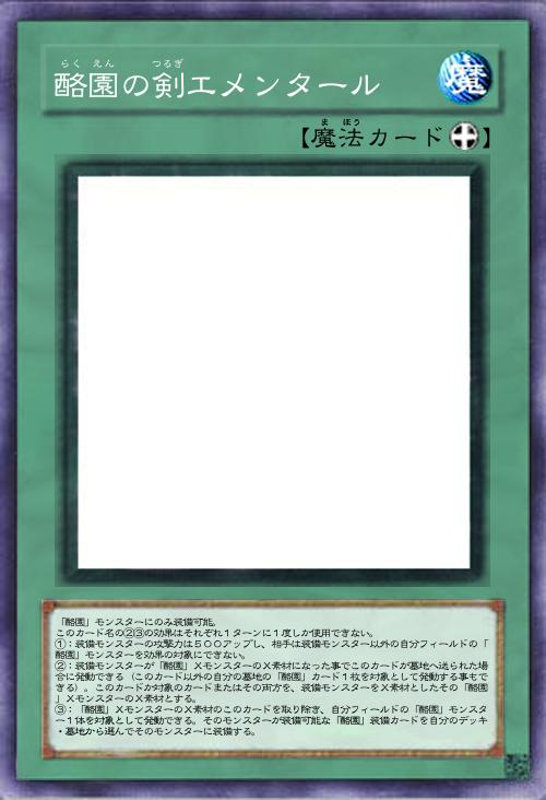 | 「酪園」モンスターにのみ装備可能。 このカード名の②③の効果はそれぞれ1ターンに1度しか使用できない。 ①:装備モンスターの攻撃力は500アップし、相手は装備モンスター以外の自分フィールドの「酪園」モンスターを効果の対象にできない。 ②:装備モンスターが「酪園」XモンスターのX素材になった事でこのカードが墓地へ送られた場合に発動できる(このカード以外の自分の墓地の「酪園」カード1枚を対象として発動する事もできる)。このカードか対象のカードまたはその両方を、装備モンスターをX素材としたその「酪園」XモンスターのX素材とする。 ③:「酪園」XモンスターのX素材のこのカードを取り除き、自分フィールドの「酪園」モンスター1体を対象として発動できる。そのモンスターが装備可能な「酪園」装備カードを自分のデッキ・墓地から選んでそのモンスターに装備する。 | |||
