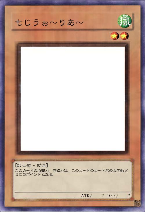 | このカードの攻撃力、守備力は、このカードのカード名の文字数×200ポイントとなる。 | |||