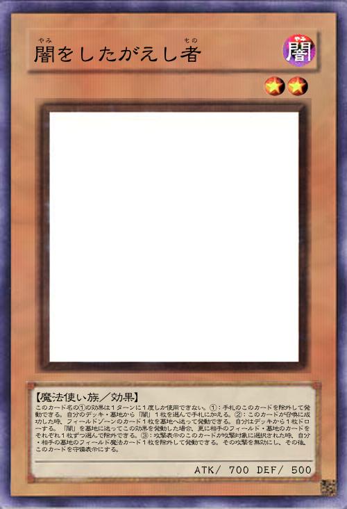 | このカード名の①の効果は1ターンに1度しか使用できない。①:手札のこのカードを除外して発動できる。自分のデッキ・墓地から「闇」1枚を選んで手札に加える。②:このカードが召喚に成功した時、フィールドゾーンのカード1枚を墓地へ送って発動できる。自分はデッキから1枚ドローする。「闇」を墓地に送ってこの効果を発動した場合、更に相手のフィールド・墓地のカードをそれぞれ1枚ずつ選んで除外できる。③:攻撃表示のこのカードが攻撃対象に選択された時、自分・相手の墓地のフィールド魔法カード1枚を除外して発動できる。その攻撃を無効にし、その後、このカードを守備表示にする。 | |||