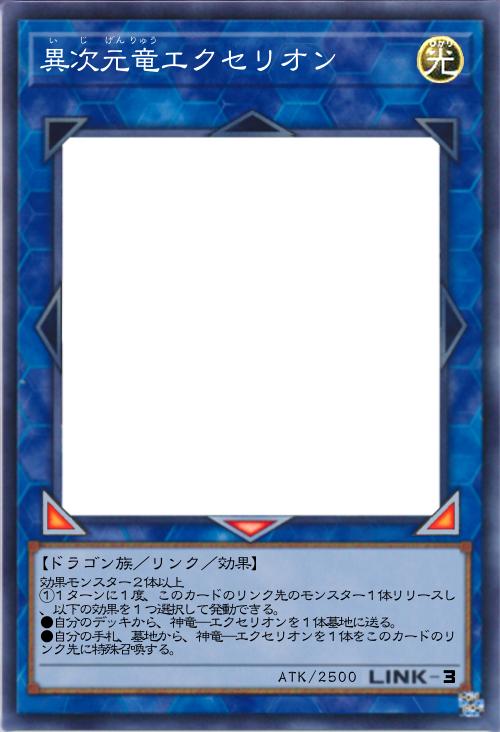 | 効果モンスター2体以上 ①1ターンに1度、このカードのリンク先のモンスター1体リリースし、以下の効果を1つ選択して発動できる。 ●自分のデッキから、神竜―エクセリオンを1体墓地に送る。 ●自分の手札、墓地から、神竜―エクセリオンを1体をこのカードのリンク先に特殊召喚する。 | |||