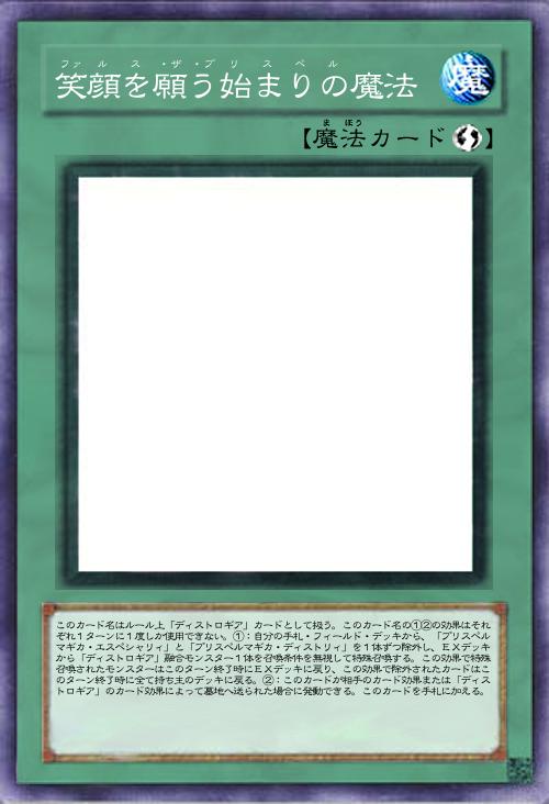 | このカード名はルール上「ディストロギア」カードとして扱う。このカード名の①②の効果はそれぞれ1ターンに1度しか使用できない。①:自分の手札・フィールド・デッキから、「プリスペルマギカ・エスペシャリィ」と「プリスペルマギカ・ディストリィ」を1体ずつ除外し、EXデッキから「ディストロギア」融合モンスター1体を召喚条件を無視して特殊召喚する。この効果で特殊召喚されたモンスターはこのターン終了時にEXデッキに戻り、この効果で除外されたカードはこのターン終了時に全て持ち主のデッキに戻る。②:このカードが相手のカード効果または「ディストロギア」のカード効果によって墓地へ送られた場合に発動できる。このカードを手札に加える。 | |||
