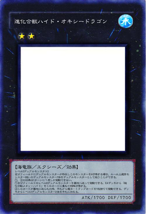 | レベル2デュアルモンスタ×2 自分フィールドにデュアルモンスターが存在しこのモンスターをX召喚する場合、ルール上通常モンスター扱いのデュアルモンスター1体をデュアルモンスターとして扱うことができる。 ①、②の効果は1ターンに1度しか発動できない。 ①自分フィールドのレベル8デュアルモンスターを墓地へ送って発動できる。EXデッキから「超化合獣メタン・ハイド」をこのカードに重ねて特殊召喚する。 ②このカードが墓地に送られた時、手札から魔法・トラップカードを1枚捨てて発動できる。デッキからレベル2デュアルモンスター2体を手札に加える。 | |||