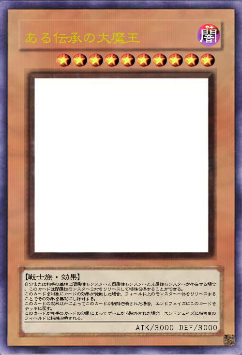 自分または相手の墓地に闇属性モンスターと風属性モンスターと光属性モンスターが存在する場合、このカードは闇属性モンスター2対をリリースして特殊召喚することができる。 このカードを対象にカードの効果が発動した場合、フィールド上のモンスター一体をリリースすることでその効果を無効にし除外する。 このカードの効果以外によってこのカードが特殊召喚された場合、エンドフェイズにこのカードをデッキに戻す。 このカードが相手のカードの効果によってゲームから除外された場合、エンドフェイズに持ち主のフィールドに特殊召喚される。 |