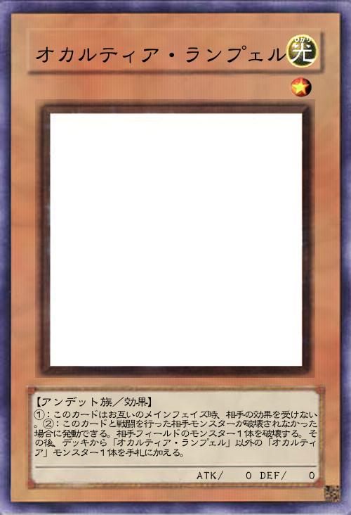 | ①:このカードはお互いのメインフェイズ時、相手の効果を受けない。②:このカードと戦闘を行った相手モンスターが破壊されなかった場合に発動できる。相手フィールドのモンスター1体を破壊する。その後、デッキから「オカルティア・ランプェル」以外の「オカルティア」モンスター1体を手札に加える。 | |||
