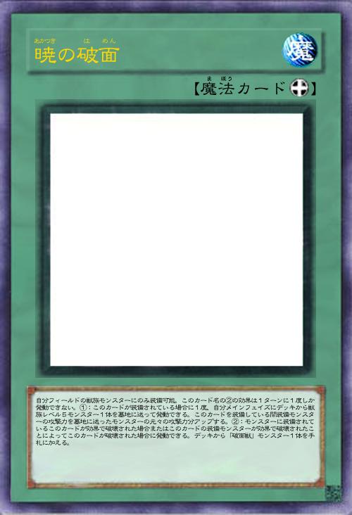 | 自分フィールドの獣族モンスターにのみ装備可能。このカード名の②の効果は1ターンに1度しか発動できない。①:このカードが装備されている場合に1度、自分メインフェイズにデッキから獣族レベル5モンスター1体を墓地に送って発動できる。このカードを装備している間装備モンスターの攻撃力を墓地に送ったモンスターの元々の攻撃力分アップする。②:モンスターに装備されているこのカードが効果で破壊された場合またはこのカードの装備モンスターが効果で破壊されたことによってこのカードが破壊された場合に発動できる。デッキから「破面獣」モンスター1体を手札に加える。 | |||