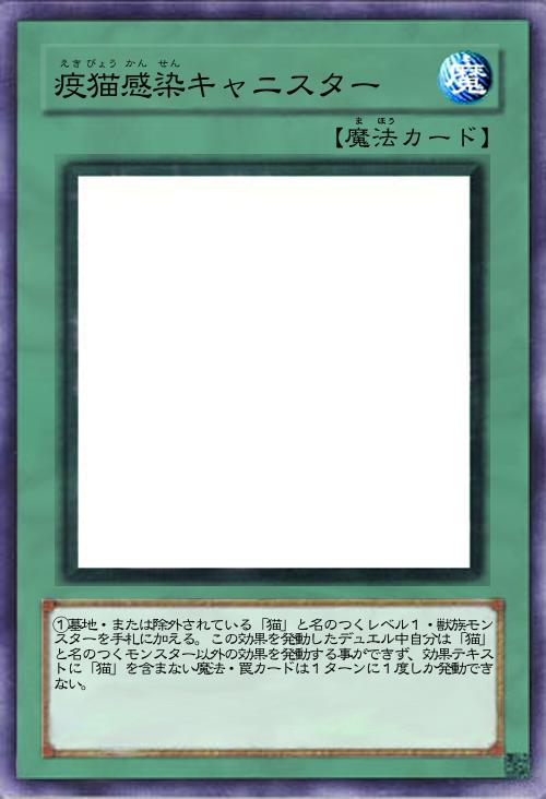 | ①墓地・または除外されている「猫」と名のつくレベル1・獣族モンスターを手札に加える。この効果を発動したデュエル中自分は「猫」と名のつくモンスター以外の効果を発動する事ができず、効果テキストに「猫」を含まない魔法・罠カードは1ターンに1度しか発動できない。 | |||