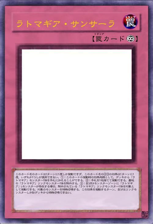| このカード名のカードは1ターンに1度しか発動できず、このカード名の②③の効果は1ターンに1度、いずれか1つしか使用できない。①:このカードの発動時の効果処理として、デッキから「ラトマギア」モンスター1体を手札に加えることができる。②:手札を1枚捨てて発動できる。墓地の「ラトマギア」リンクモンスター1体を除外する。②:自分EXモンスターゾーンに「ラトマギア」Lモンスターが存在する場合、除外されている「ラトマギア」リンクモンスター1体を対象として発動できる。対象のモンスターを特殊召喚する。この効果を発動するターン、自分はリンクモンスターしかEXデッキから特殊召喚できない。 | |||