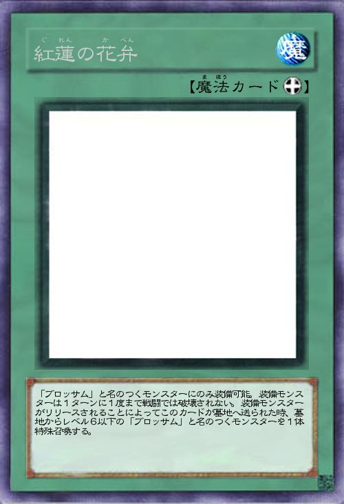 | 「ブロッサム」と名のつくモンスターにのみ装備可能。装備モンスターは1ターンに1度まで戦闘では破壊されない。装備モンスターがリリースされることによってこのカードが墓地へ送られた時、墓地からレベル6以下の「ブロッサム」と名のつくモンスターを1体特殊召喚する。 | |||