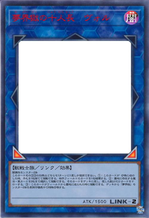| 闇属性モンスター2体 このカード名の②③の効果はどちらも1ターンに1度しか使用できない。①:このカードがⅬ召喚に成功した時、手札を1枚捨てて発動できる。相手フィールドのカードを1枚破壊する。②:墓地に存在する魔法・罠カードを2枚まで選択して発動できる。そのカードをデッキに戻し、戻した数分だけカードをドローする。③:このカードがフィールドから墓地に送られた時に発動できる。デッキから「夢界獄」モンスター2体を表側守備表示で特殊召喚する。 | |||