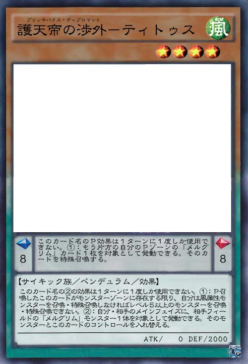 | このカード名の②の効果は1ターンに1度しか使用できない。①:P召喚したこのカードがモンスターゾーンに存在する限り、自分は風属性モンスターを召喚・特殊召喚しなければレベル5以上のモンスターを召喚・特殊召喚できない。②:自分・相手のメインフェイズに、相手フィールドの「メルグリム」モンスター1体を対象として発動できる。そのモンスターとこのカードのコントロールを入れ替える。 | |||