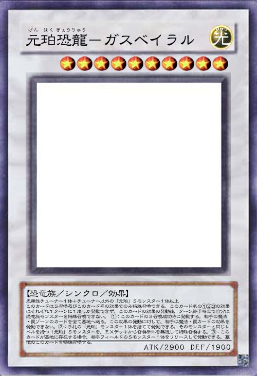 | 光属性チューナー1体+チューナー以外の「元珀」Sモンスター1体以上 このカードはS召喚及びこのカード名の効果でのみ特殊召喚できる。このカード名の①②③の効果はそれぞれ1ターンに1度しか発動できず、このカードの効果の発動後、ターン終了時まで自分は恐竜族モンスターを特殊召喚できない。 ①:このカードのS召喚成功時に発動する。相手の魔法・罠ゾーンのカードを全て墓地へ送る。この効果の発動に対して、相手は魔法・罠カードの効果を発動できない。②:手札の「元珀」モンスター1体を捨てて発動できる。そのモンスターと同じレベルを持つ「元珀」Sモンスターを、EXデッキから召喚条件を無視して特殊召喚する。③:このカードが墓地に存在する場合、相手フィールドのSモンスター1体をリリースして発動できる。墓地のこのカードを特殊召喚する。 | |||