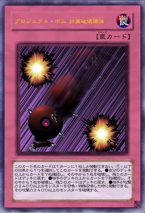 「自分か相手のデッキの上から7枚を確認し、その中の1枚を破壊する計画破壊の爆弾。