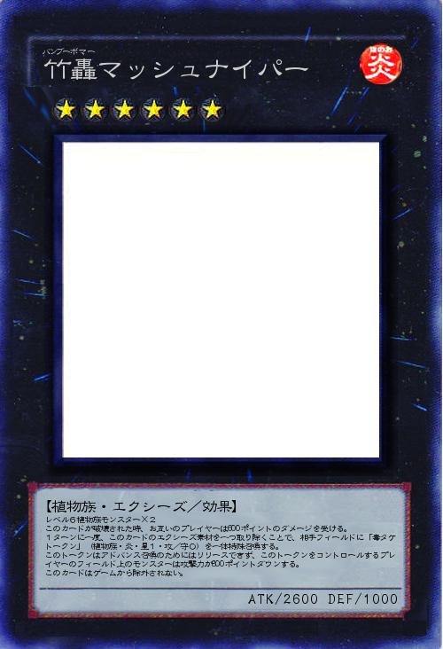 レベル6植物族モンスター×2 このカードが破壊された時、お互いのプレイヤーは600ポイントのダメージを受ける。 1ターンに一度、このカードのエクシーズ素材を一つ取り除くことで、相手フィールドに「毒タケトークン」(植物族・炎・星1・攻/守0)を一体特殊召喚する。 このトークンはアドバンス召喚のためにはリリースできず、このトークンをコントロールするプレイヤーのフィールド上のモンスターは攻撃力が800ポイントダウンする。 このカードはゲームから除外されない。 |