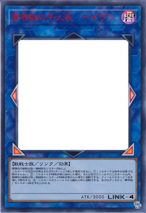 | 闇属性の獣戦士族・機械族モンスター2体以上 このカードの②③の効果はそれぞれ1ターンに1度しか使用できない。①:このカードは相手の効果では除外されない。②:このカードが特殊召喚に成功した場合、または自分フィールドにこのカード以外、闇属性の獣戦士族・機械族モンスターが特殊召喚された場合に発動できる。フィールドのカード1枚を選んで除外する。③:このカードがフィールドから離れた時に発動できる。自分はデッキから「夢界獄」モンスター3体を手札に加える。 | |||