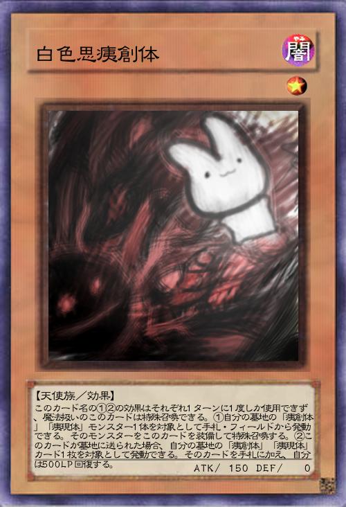 コメントありがとうございます。そんなところですね。白いからシンクロ枠を連想しました。今思えばクリアウィング系列のシンクロモンスターもそんな感じで見た目が決定された気がしてなりません。全員真っ白です。」(2024-06-01 19:22)
