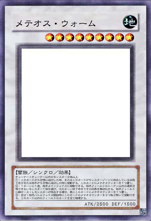 | チューナー+チューナー以外のモンスター2体以上 ①:このカードがS召喚に成功した時、またはこのカードがモンスターゾーンに存在している状態で自分または相手がS召喚に成功した時に発動する。このカードにメテオカウンターを1つ置く。②:1ターンに1度、相手メインフェイズに発動できる。相手フィールドのトークン以外の通常召喚できないモンスター1体を選び、次のターン終了時までその効果を無効化する。相手フィールドに融合・X・Lモンスターが存在する場合、更にこのカードにメテオカウンターを1つ置く。 ③:自分・相手バトルフェイズ開始時にこのカードのメテオカウンターを3つ取り除いて発動できる。このカード以外のフィールドのカードを全て破壊する。 | |||