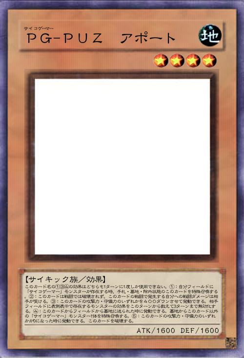| このカード名の①③④の効果はどちらも1ターンに1度しか使用できない。①:自分フィールドに「サイコゲーマー」モンスターが存在する時、手札・墓地・除外状態のこのカードを特殊召喚する。②:このカードは戦闘では破壊されず、このカードの戦闘で発生する自分への戦闘ダメージは相手が受ける。③:このカードの攻撃力・守備力のいずれかを400ダウンさせて発動できる。相手フィールドに表側表示で存在するモンスターの効果をこのターンから数えて3ターンまで無効化する。④:このカードからフィールドから墓地に送られた時に発動できる。墓地からこのカード以外の「サイコゲーマー」モンスター1体を特殊召喚する。⑤:このカードの攻撃力・守備力のいずれかが0になった時に発動できる。このカードを破壊する。 | |||