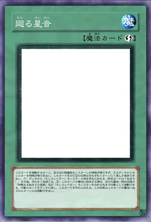| このカードを発動するターン、自分は幻想魔族モンスターしか特殊召喚できず、EXデッキからモンスターを特殊召喚できない。このカード名の①②の効果はそれぞれ1ターンに1度しか使用できない。①:デッキから「セレスレイダー」モンスター2体を手札に加える(同名カードは1枚まで)。その後、手札を1枚捨てる。②:このカードが墓地に存在する場合、自分の墓地・除外状態の「神聖なる始まりの星眼」及び「セレスレイダー」モンスターを合計2枚まで対象として発動できる。対象のカードをデッキに戻し、このカードを手札に加える。この効果はこのカードが墓地へ送られたターンには発動できない。 | |||