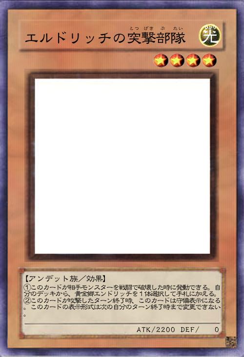 | ①このカードが相手モンスターを戦闘で破壊した時に発動できる。自分のデッキから、黄金郷エンドリッチを1体選択して手札に加える。②このカードが攻撃したターン終了時、このカードは守備表示になる。このカードの表示形式は次の自分のターン終了時まで変更できない。 | |||