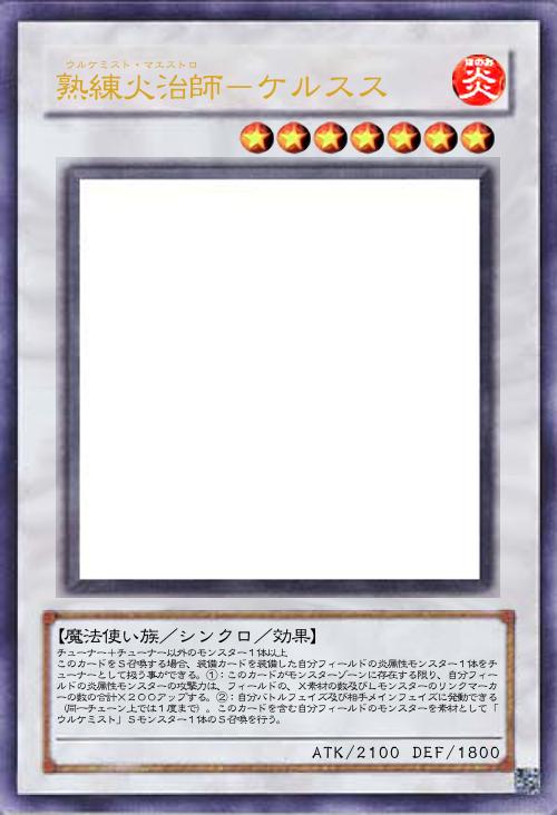 | チューナー+チューナー以外のモンスター1体以上 このカードをS召喚する場合、装備カードを装備した自分フィールドの炎属性モンスター1体をチューナーとして扱う事ができる。①:このカードがモンスターゾーンに存在する限り、自分フィールドの炎属性モンスターの攻撃力は、フィールドの、X素材の数及びLモンスターのリンクマーカーの数の合計×200アップする。②:自分バトルフェイズ及び相手メインフェイズに発動できる(同一チェーン上では1度まで)。このカードを含む自分フィールドのモンスターを素材として「ウルケミスト」Sモンスター1体のS召喚を行う。 | |||