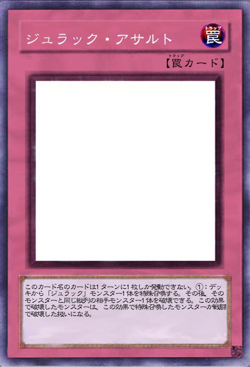 | このカード名のカードは1ターンに1枚しか発動できない。①:デッキから「ジュラック」モンスター1体を特殊召喚する。その後、そのモンスターと同じ縦列の相手モンスター1体を破壊できる。この効果で破壊したモンスターは、この効果で特殊召喚したモンスターが戦闘で破壊した扱いになる。 | |||