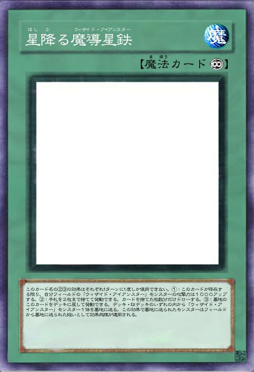 | このカード名の②③の効果はそれぞれ1ターンに1度しか使用できない。①:このカードが存在する限り、自分フィールドの「ウィザイド・アイアンスター」モンスターの攻撃力は1000アップする。②:手札を2枚まで捨てて発動できる。カードを捨てた枚数分だけドローする。③:墓地のこのカードをデッキに戻して発動できる。デッキ・EXデッキのいずれの内から「ウィザイド・アイアンスター」モンスター1体を墓地に送る。この効果で墓地に送られたモンスターはフィールドから墓地に送られた扱いとして効果処理が適用される。 | |||