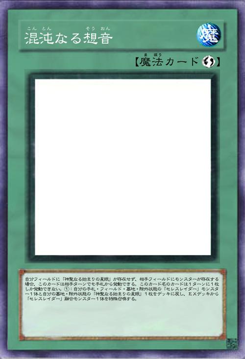 | 自分フィールドに「神聖なる始まりの星眼」が存在せず、相手フィールドにモンスターが存在する場合、このカードは相手ターンでも手札から発動できる。このカード名のカードは1ターンに1枚しか発動できない。①:自分の手札・フィールド・墓地・除外状態の「セレスレイダー」モンスター1体と自分の墓地・除外状態の「神聖なる始まりの星眼」1枚をデッキに戻し、EXデッキから「セレスレイダー」融合モンスター1体を特殊召喚する。 | |||