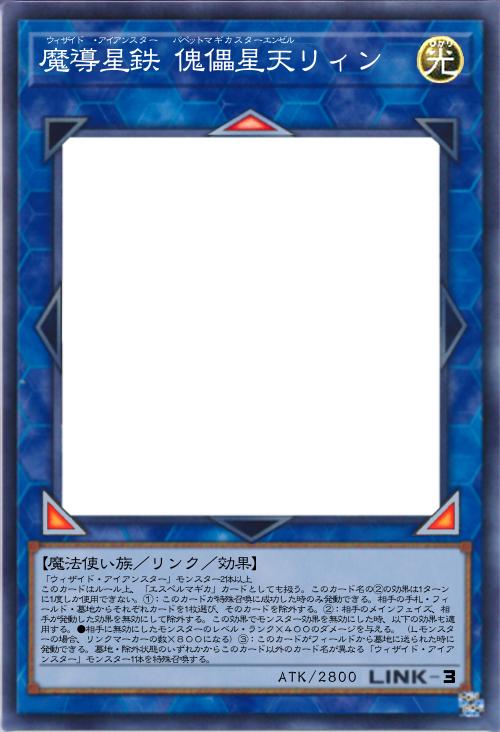 | 「ウィザイド・アイアンスター」モンスター2体以上 このカードはルール上、「エスペルマギカ」カードとしても扱う。このカード名の②の効果は1ターンに1度しか使用できない。①:このカードが特殊召喚に成功した時のみ発動できる。相手の手札・フィールド・墓地からそれぞれカードを1枚選び、そのカードを除外する。②:相手のメインフェイズ、相手が発動した効果を無効にして除外する。この効果でモンスター効果を無効にした時、以下の効果も適用する。●相手に無効にしたモンスターのレベル・ランク×400のダメージを与える。(Lモンスターの場合、リンクマーカーの数×800になる)③:このカードがフィールドから墓地に送られた時に発動できる。墓地・除外状態のいずれかからこのカード以外のカード名が異なる「ウィザイド・アイアンスター」モンスター1体を特殊召喚する。 | |||