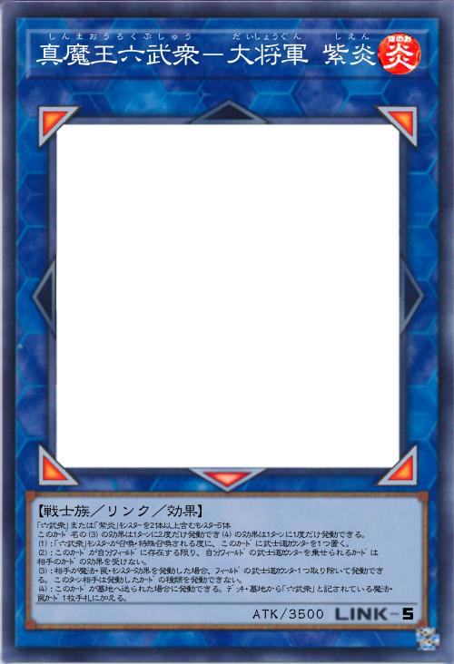 六武衆なら余裕で出せるリンク5のモンスターを作ってみました。リメイク元となる大将軍紫炎を大きくかけ離れたカードですねw