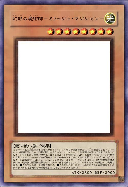 | このカード名の①③の効果はそれぞれ1ターンに1度しか使用できない。①:自分の手札・フィールド(表側表示)から「幻影の騎士-ミラージュ・ナイト-」1体を墓地へ送って発動できる。このカードを手札から特殊召喚する。②:このカードが相手モンスターと戦闘を行うダメージ計算時に発動できる。このカードの攻撃力は、その相手モンスターの元々の攻撃力分アップする。③:このカードが戦闘を行ったダメージステップ終了時、このカードをデッキに戻し、自分の墓地の魔法使い族・戦士族で闇属性の融合モンスター1体を対象とし、以下の効果から1つを選択して発動できる。●そのモンスターを特殊召喚する。●そのモンスターにカード名が記された融合素材モンスターを2体まで墓地から特殊召喚する(同名カードは1枚まで)。 | |||