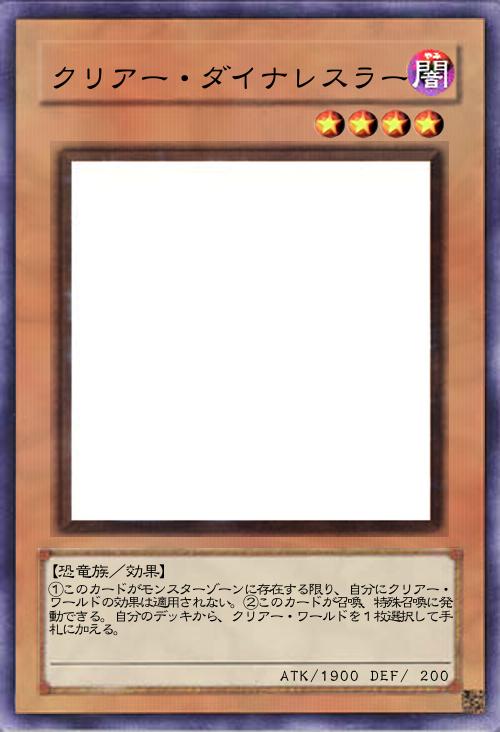 | ①このカードがモンスターゾーンに存在する限り、自分にクリアー・ワールドの効果は適用されない。②このカードが召喚、特殊召喚に発動できる。自分のデッキから、クリアー・ワールドを1枚選択して手札に加える。 | |||